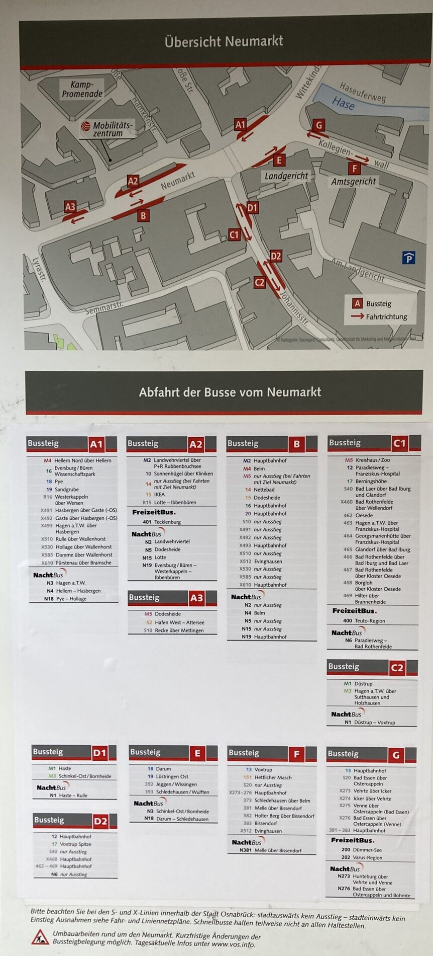2026 wird es eher schlechter: Wie zu jedem Jahresanfang werden die Busfahrpreise erhöht – um 3,2 Prozent schreibt die NOZ. In Osnabrück kostet eine Einzelfahrt 3,20 €, digital 3,00 €. Eine Fahrt aus dem Umland nach Osnabrück kostet künftig statt 4,90 € 5,10 €, was eine Preiserhöhung von 4,1 Prozent bedeutet. Und der Neumarkt-Umbau beginnt; die Busse werden künftig nur noch in eine Richtung über den Neumarkt fahren. Das bedeutet längere Fahrzeiten, Umwege, längere Laufzeiten zu und von den Haltestellen und natürlich höhere Kosten, da die Fahrstrecken länger werden. Auf dem Bild zu diesem Beitrag sind 11 Haltestellen allein am Neumarkt zu finden, hinzu kommen eine an der Johanniskirche und die künftigen an der Johannisfreiheit. Somit werden in der Innenstadt / im Zentrum / am zentralen Busknotenpunkt der Grossstadt Osnabrück 15 bis 20 auseinanderliegende Haltstellen unmöglich machen, schnell, komfortabel, übersichtlich, planmäßig und sicher den ÖPNV zu nutzen.